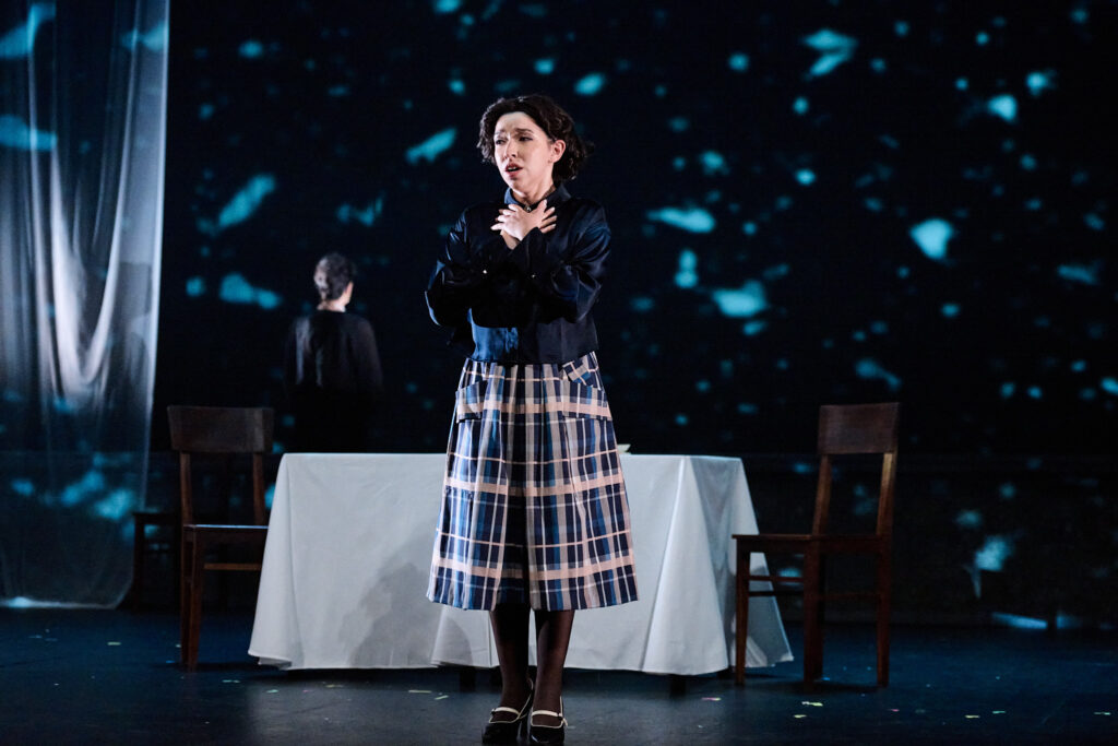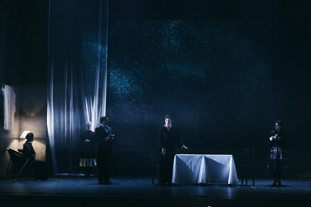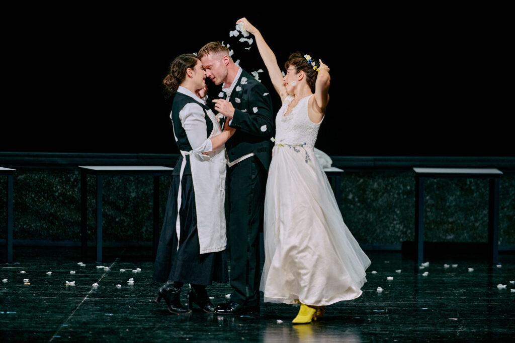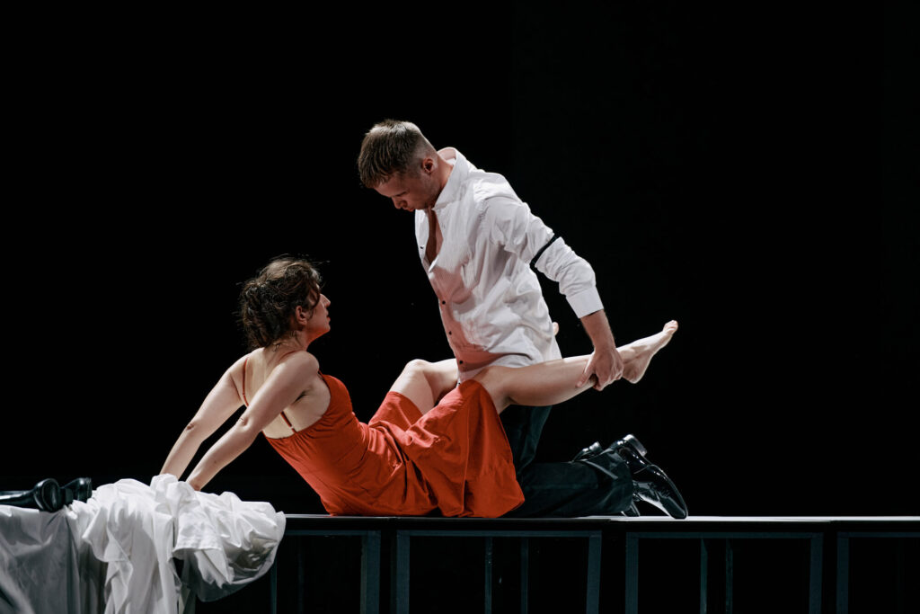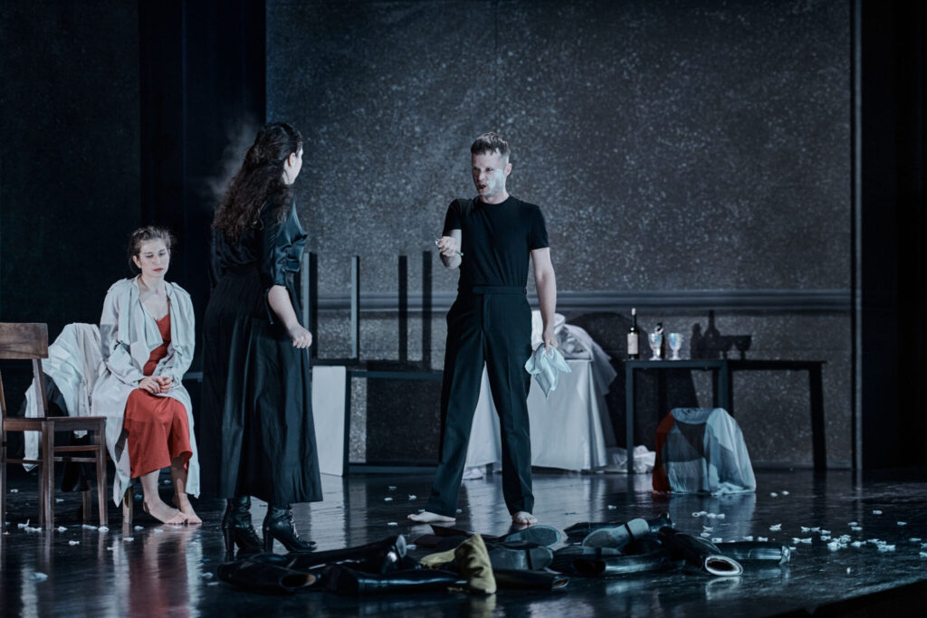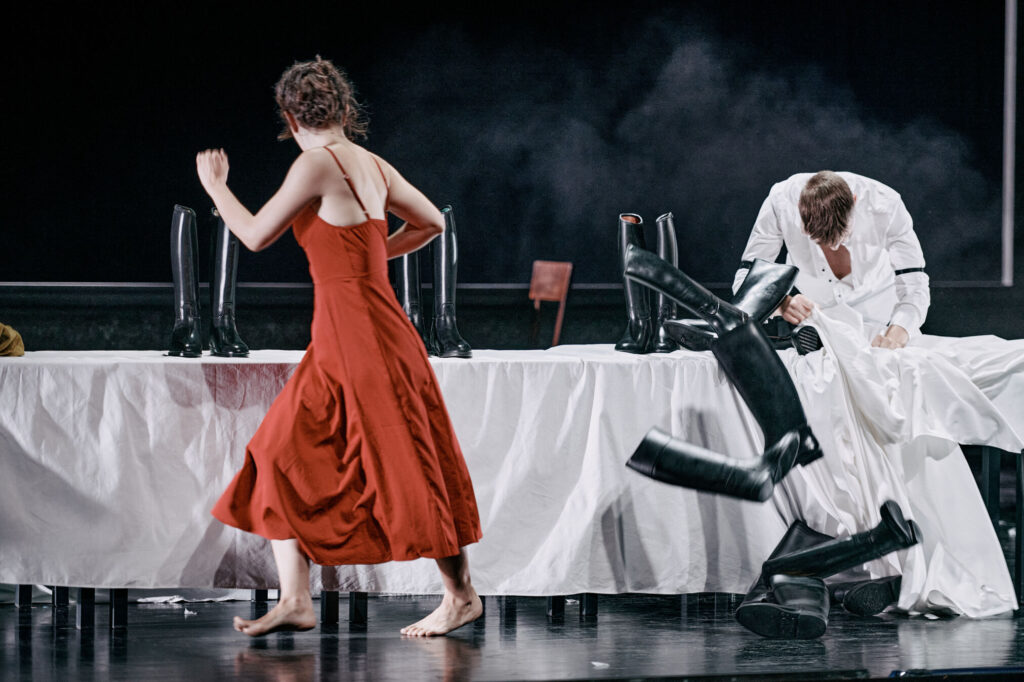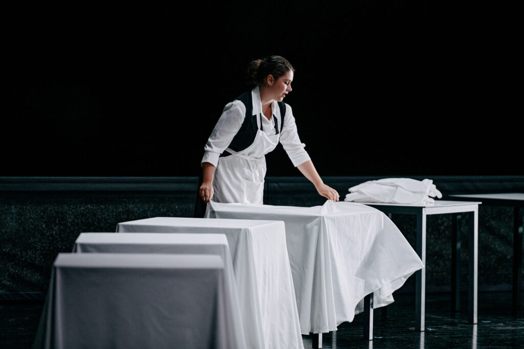 “Daniela Kerck’s set design and Hannah König’s costumes emphasize social tensions, creating an austere and powerful visual atmosphere.” Première Loge